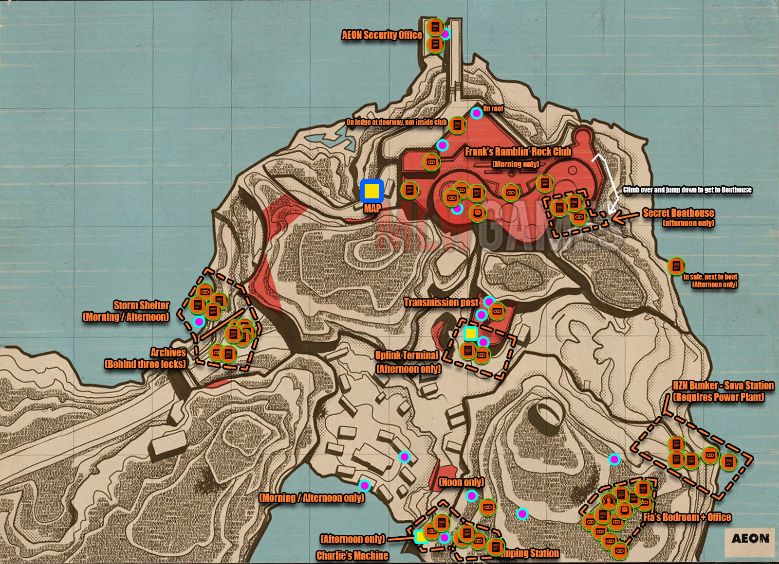 Noon. Provides access to Delivery Machines in all four maps. Easiest way: From the rear entrance, go to the immediate right and through the window. Your character will not 'discover' or remember this code - You must yourself remember it and enter it into a delivery machine.