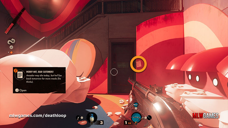 This gives you the Hanger 1 door access code. Opposite corner to Harriet's Office on the walkway above where she is lowering the Mask guy into the gas. On top of a box.