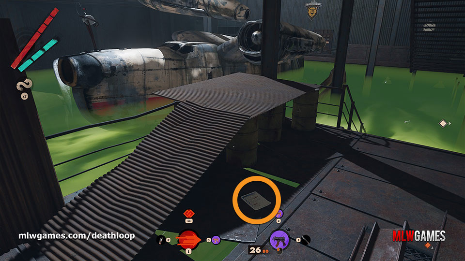Fathoms of Lament, hidden room. Climb in through window on Hanger 1 side (shoot Nullifer from Hanger 1 roof)
